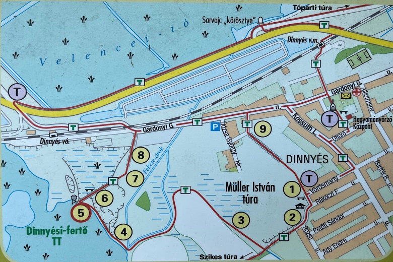 Dinnyés nyugati szomszédságában terül el a Dinnyési-fertő 560 hektáros védett területe, ahol Gárdony város önkormányzata 2010-ben létrehozta a terület egyedülálló természeti értékeinek, valamint a környék látnivalóinak a bemutatására a Madárdal tanösvényt. Az alábbi térképen látható, hogy több túralehetőség is adott, parkolni Dinnyés belterületén a legegyszerűbb. A kilátó az 5. állomásnál található, ezt mindenképpen érdemes felkeresni.