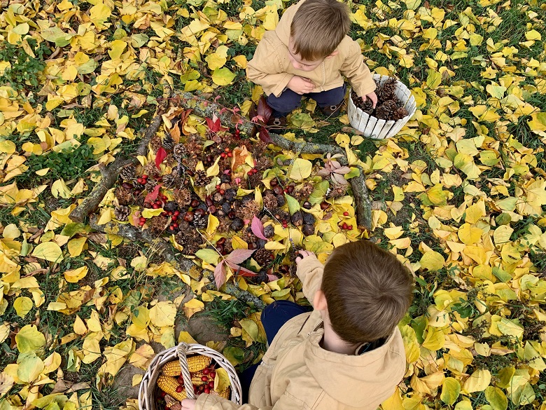Az év során igyekszem az évszakoknak, az ünnepeinknek megfelelően témát, alapanyagot kínálni. A legizgalmasabb „feladatok” a bölcsődében ősszel, a színes levelekből varázspálca készítés, a gesztenye fűzés, és a termés válogatás volt a gyerekek számára.