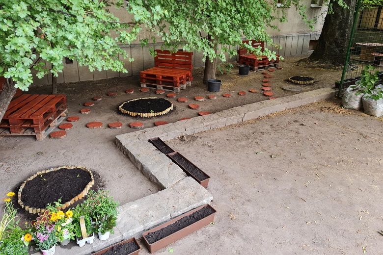 Nem mindegyik iskola rendelkezik megfelelő méretű udvarral, kerttel. De ahol már egy kis földterület van, ott a lehetőség a kertészkedésre. A covid elmúltával a szülők ismét bejöhettek iskolánk épületébe, így 2022. áprilisában a Föld Napja alkalmával megújult többek között a rézsűnk, mely a műfüves focipálya melletti keskeny földsáv egy lebetonozott terület mellett.