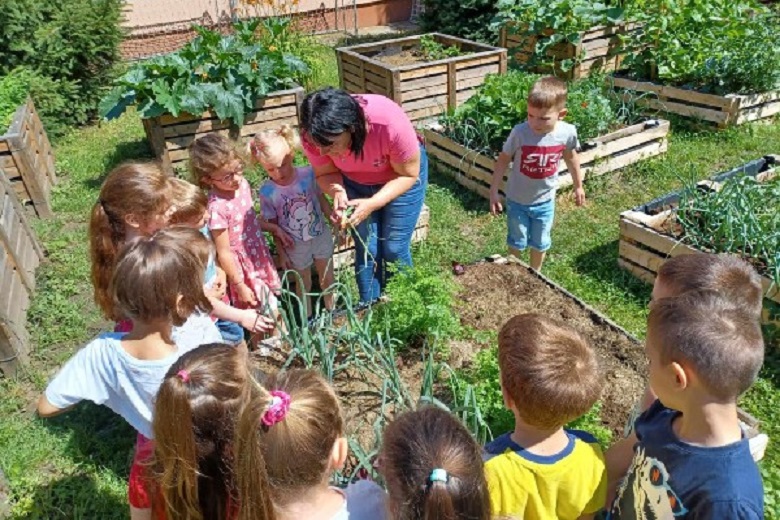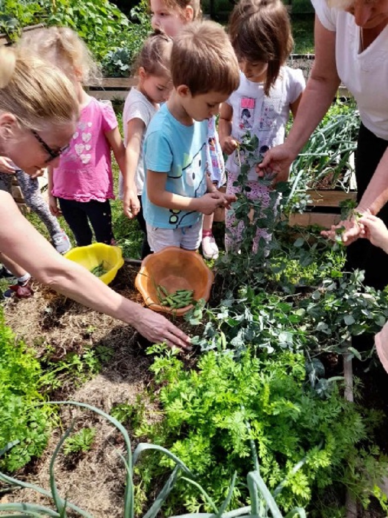 A rovarhoteleinkben pedig számtalan apró bogár, beporzók, katicabogár talált otthonra. Óvodásaink már tudják, hogy ezek az apró lények fontos szerepet játszanak a természetes ökoszisztémában, a beporzásban és a kártevők elleni védekezésben. Örökbe fogadtunk egy méhcsaládot a kálózi Fogas Méhészetben, ezzel csatlakoztunk a családi méhészet örökbefogadó programjához. A mézes napok jeles napjaink között szerepeltek már évek óta, hangsúlyozva a méz fogyasztás egészség szempontjából fontos hatását. Örömmel kóstoljuk a különböző kerti növényekkel ízesített mézkészítményeket is. Nálunk megelevenedik a népmese, paszulyt növesztünk, igaz az égig még nem ért fel, de reményt keltünk, egy szebb, egy élhetőbb jövőre. Óvodakertjeink zengenek a madarak csivitelésétől, óvodásaink dalaitól – akár munka közben is – a népi körjátékok megelevenednek, időjóslást végzünk, értik a gyerekek a természethez kötődő közmondásokat, mert a szemléltetés élő (tapintható, megehető), és közben elsajátítják azokat az ismereteket, amivel hozzájárulunk egy fenntarthatóbb jövő biztosításához.